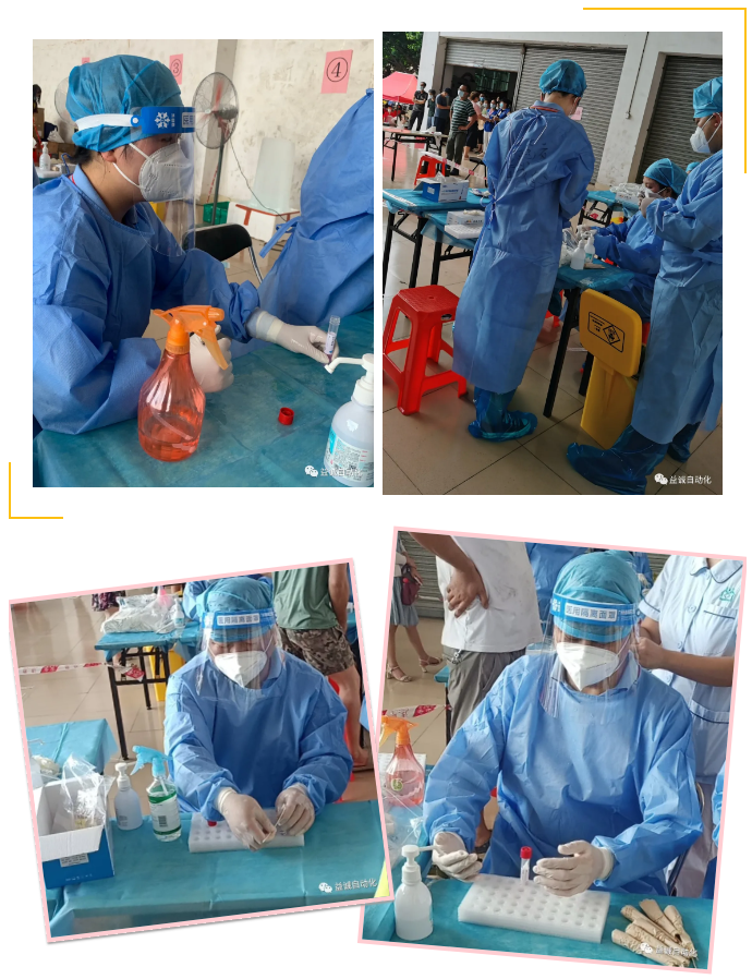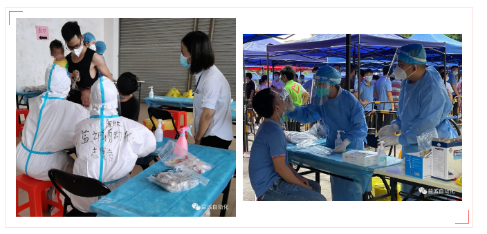 当日,东莞天气骄阳似火、烈日炎炎,室外气温高达三十多度。多宝电竞自动化五名志愿员分两批轮班,投身抗疫一线。他们快速学习了工作要求,迅速上岗,承担了医护人员采样辅助、封瓶、包装检测试管等工作。